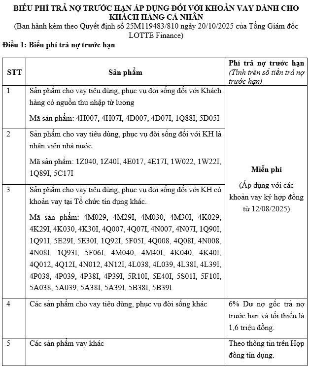 Biểu phí & lãi suất Thẻ tín dụng Cá nhân L.CARD/INSTALLMENT CARD