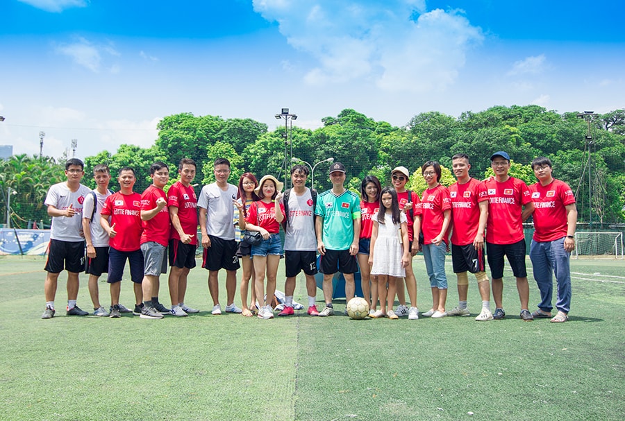 Những cổ động viên máu lửa nhất của LOTTE Finance chụp cùng toàn đội